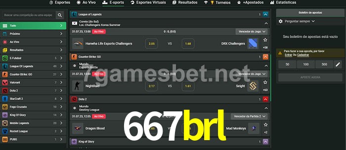 O 667brl oferece uma grande seleção de opções de apostas em e-sports com probabilidades competitivas